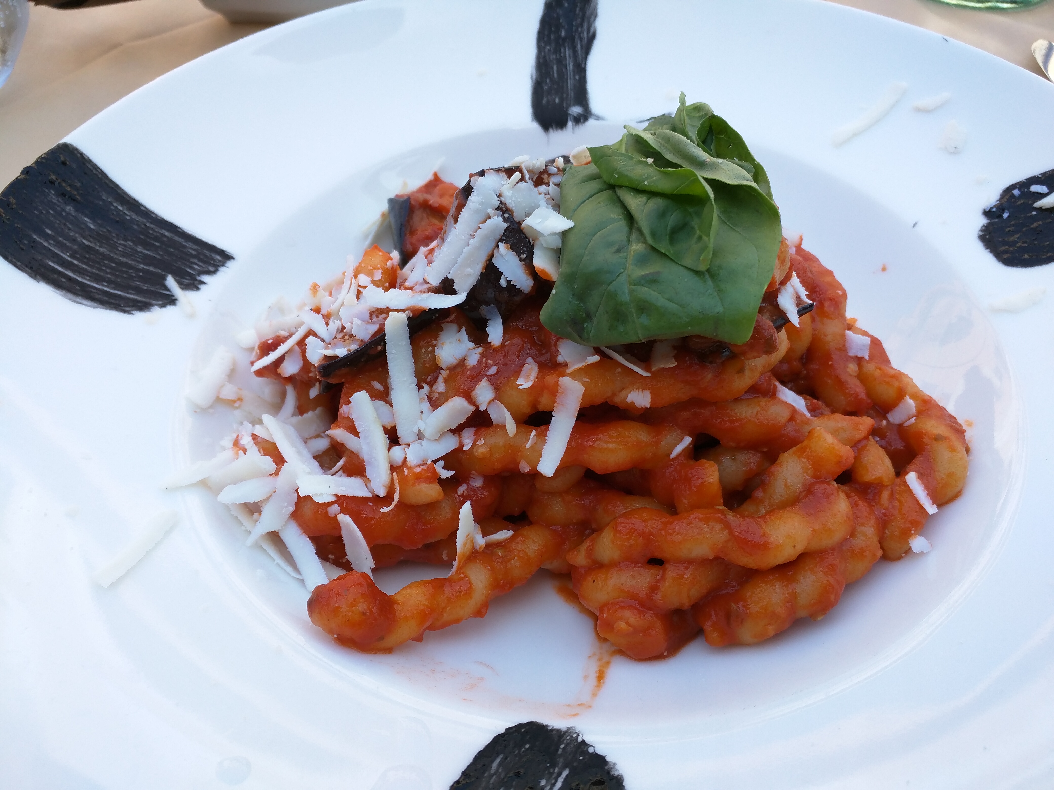 I was a bit overwhelmed, having previously obsessed over the making of fresh pasta, and now I was actually in Italy, eating pasta made in Italy. I geeked out massively over this, probably alarming A. It was a delicate balancing act, getting food in my mouth with a modicum of decorum, holding a semi-coherent conversation with A. (on my end; he was perfectly eloquent), properly appreciating the flavors and textures, trying hard to contain the excitement building inside my head, and doing my best not to splatter everywhere in my practically trademarked clumsiness.